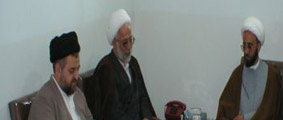 والتقى سماحة المرجع الديني الشيخ حسين بن علي المنتظري وسماحة المرجع الديني السيد صادق الشيرازي والفقيه المحقق الشيخ جعفر السبحاني.