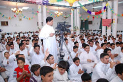 من منطلق الآية الكريمة ﴿وما أرسلناك إلاّ رحمة للعالمين قال سماحته في بداية حديثه أن الرسول جاء في مجتمع جاهلي يفتقد الكثير من القيم الإنسانية والحياتية وفي وقت كان الناس فيه مشغولون بعبادة الأصنام وشراء العبيد وتسلّط الأقوياء على الضعفاء وبظروف وطريقة غير مقبولة في مجتمع لا أمان له يسرق وينهب ويقتل ويؤذي، واستطاع بجهوده وجهود الصحابة المخلصين الذين رفعوا لواء التغيير إلى تحويل ذلك المجتمع إلى مجتمع متعاون يهتم بالقيم الإنسانية ويسعى إلى نشر ثقافة المحبة والرحمة بين الناس حيث جسّد الرسول بسلوكه وبمنطقه مع الجميع القيم الروحية المرتبطة بالسماء كما قام ببناء البرنامج العملي والقاعدة الأساسية المرتبطة بالحياة الاجتماعية والمشاركة الفاعلة مع الناس.