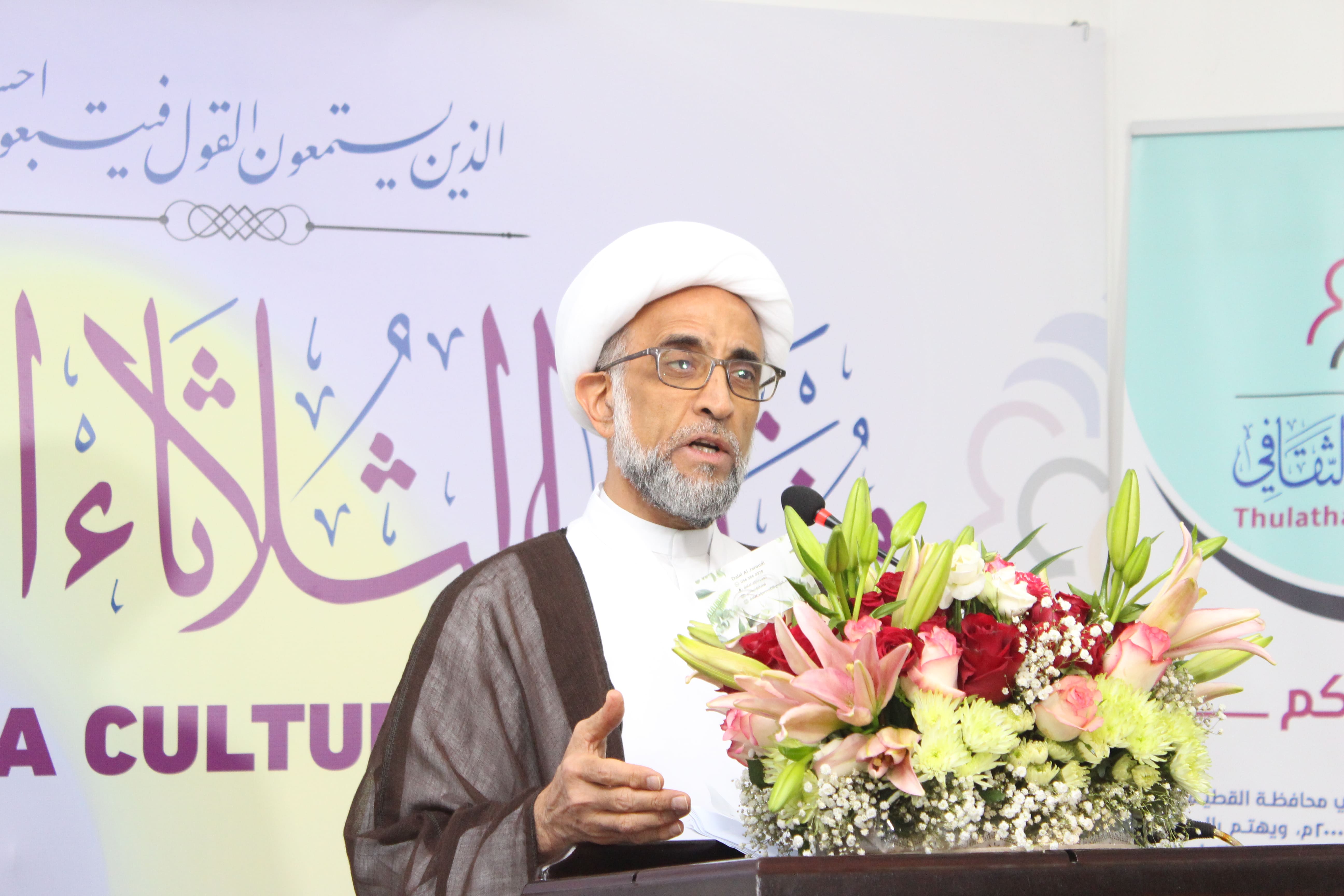 وألقى المشرف عل المنتدى الأستاذ جعفر الشايب كلمة المنتدى ذاكرًا فيها اهتمام الفقيد بتشبيك روابط العمل الثقافي وجمع القائمين على المنتديات والصالونات الثقافية مع نظرائهم من مسئولي الأندية الأدبية، وممارسة دورا أبويا تجاه الحالة الثقافية في المملكة من أجل دعم كل مجالات التعاون والتنسيق بين مختلف الأطراف ورسم خطط عمل وبرامج مشتركة تعزز من الدور الثقافي لهذه المؤسسات. ثم عرض فيلم قصير أعده المنتدى عن سيرة حياته ودوره الثقافي وزيارته مع شخصيات ثقافية حجازية لمحافظة القطيف.